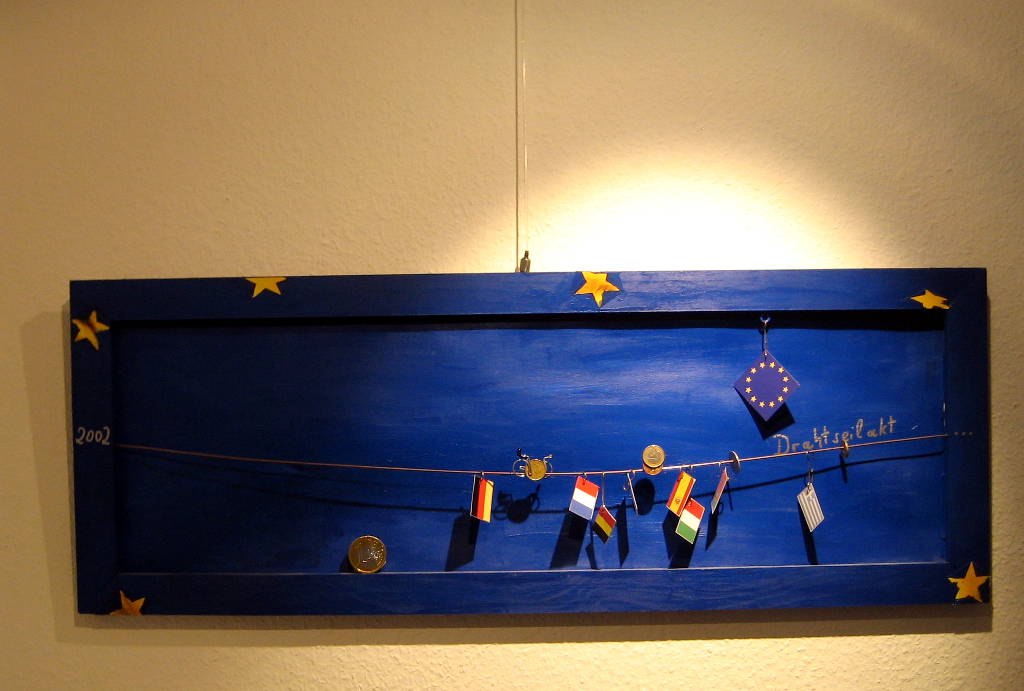 Die Overather Künstlerin Elisabeth Schwamborn zeigt in ihren Gemälden und Objekten einen Spannungsbogen künstlerischer Intuition und politisch geprägter Aussage. In einigen Bildern setzt sie sich zeitkritisch mit aktuellen Themen auseinander. Zahlen und Textfragmente verstärken die Aussagekraft ihrer Werke. Bilder und Objekte zeigen ihre Sichtweise auf das Universum, auf Planeten und Sterne.